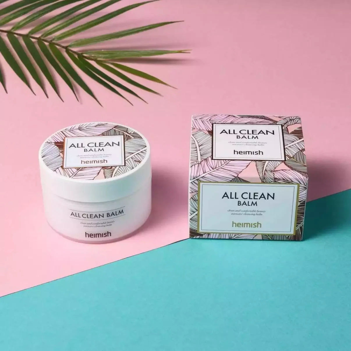 L'All Clean Balm Heimish est un baume nettoyant formulé avec des ingrédients botaniques naturels pour nettoyer en profondeur et enlever le maquillage et la crème solaire. Il se présente d'abord sous la forme d'un baume solide, puis se transforme en huile nettoyante sur la peau et devient laiteux au moment du rinçage.