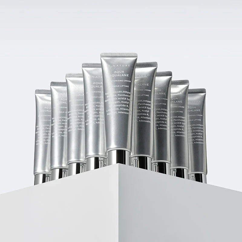 La crème hydratante S.NATURE Aqua Squalane est le produit phare de la marque. Elle offre un soin complet aux peaux sèches et sensibles. Sa formule brevetée, à base d'Aquaxyl (glucose et xylitol), hydrate la peau en profondeur et prévient la déshydratation, pour un teint repulpé et éclatant. Enrichie en squalane